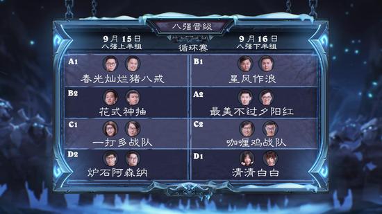 9月15日16点,双人现开赛冰封王座篇将打响八强循环赛上半组的比赛。届时涛妹&春哥的“春光灿烂猪八戒”队、杨心宇&吴钰的“花式神抽”队、秋日&千雪的“一打多”队以及罗西基&dogggg的“炉石阿森纳”队将展开新一轮的角逐,究竟哪支队伍能够脱颖而出呢?