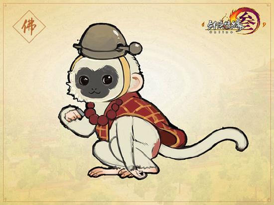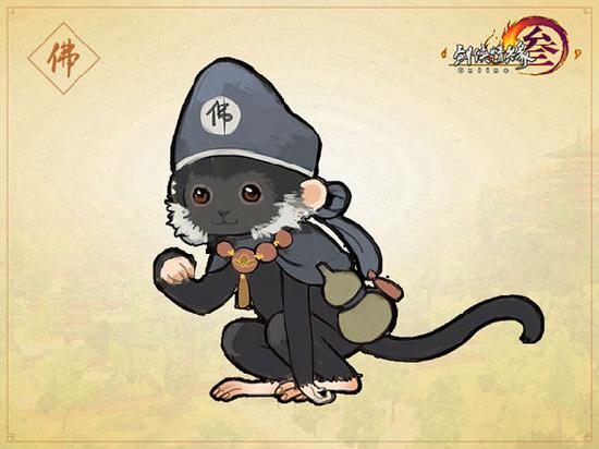 通体漆黑,却留着白色的胡子,背着行囊和葫芦,僧帽上写有佛字,似乎为闯荡江湖作了周密的准备。