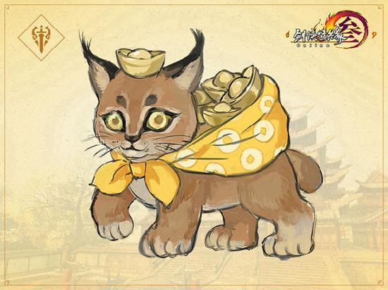 侠士可在这批猞猁上发现诸多藏剑的喜爱之物,除了银杏与剑,特别有一只背负着成堆的元宝,彰显藏剑山庄的富贵逼人。