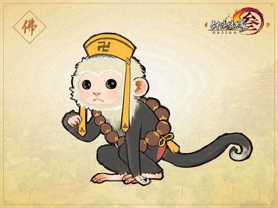 唯一的一只白毛猴,还有袈裟上身,头顶法宝木鱼,憨厚可掬。