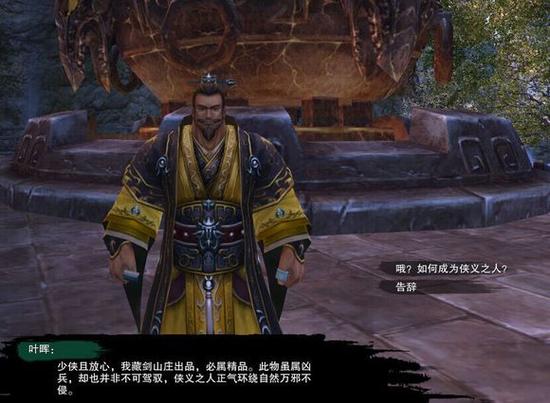 再次叶晖对话,会问你是不是来取武器的,选择是的叶晖会说你还承受不住武器的煞气,小心变成煞笔。