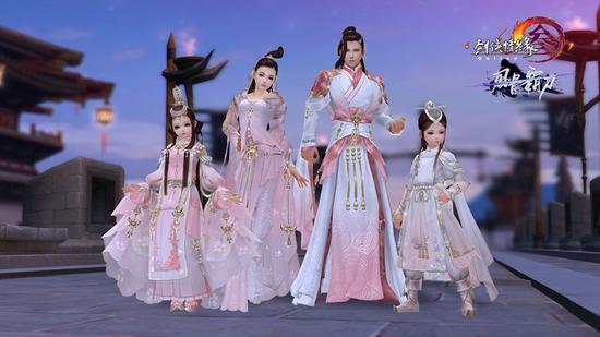 全新墨客主题外观“熠笼烟薄”在布料和裁剪工艺上大幅革新,匠心独运的采用了大面积的轻纱材质,透明纱衣质感轻盈,白色与墨色的搭配烘托出卓尔不凡的书生意气。成女英姿非凡,独特的腰带位置营造出大长腿的视觉效果。萝莉将书生墨意与不对称蝴蝶结元素融合,在整体古风中多了几许俏皮。少侠体型满足众多侠士的期待,采用细长修身的裤腿,配合精妙的布料纹理与素雅的饰品搭配,如同画卷中走出的少年郎。成男体型更是极尽还原雅的风情,从头饰到胸前刺绣均为精心刻画,俊秀又撩人。