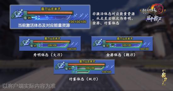 罡风起处刀鸣烈,龙出沧海撼雷霆。霸刀武学以北傲诀作为基础心法,以力道外功作为主属性。三种体态均有对应的能量资源,当侠士处于任一体态时,非当前体态所对应的能量资源会获得恢复。同时,全新的招式释放机制——透支机制也将首次在霸刀武学中出现。