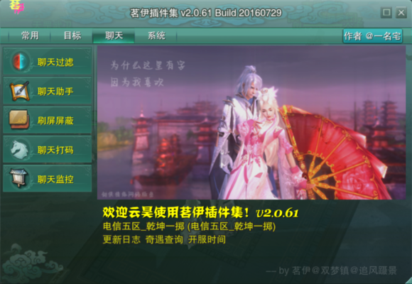 这里<常用>、<目标>、<系统>标签是我安装了“常用工具”功能,是为了在直播的时候给观众看“历史技能”,这里直接忽略这个功能,按照上面写的插件安装方式,只需关注<聊天>这一个标签。