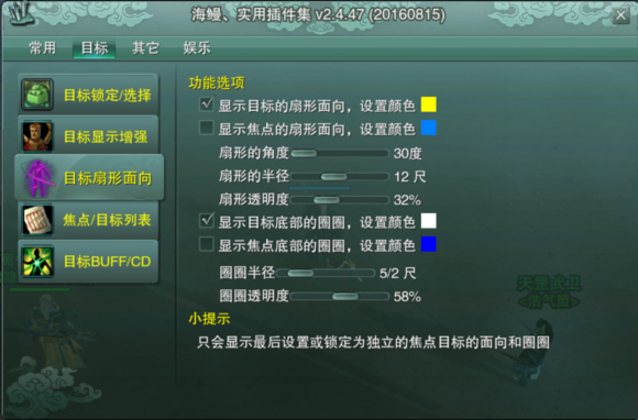 剑三的攻击,是要面对目标释放,而在PVP中,敌方往往通过移动来躲避你的面向,海鳗的目标扇形面向功能就可以让你清楚地看到对方的面向。具体原理可以自行测试。