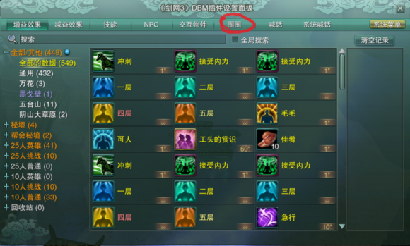 DBM是剑三PVE的核心插件,有很强的副本辅助功能,当然,我们主要利用其“画圈圈”的功能来显示长歌门的影子。