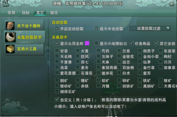 剩下的项目里都不用调整,只有“其它-采集拾取助手”里有点小小的改动,如下图: