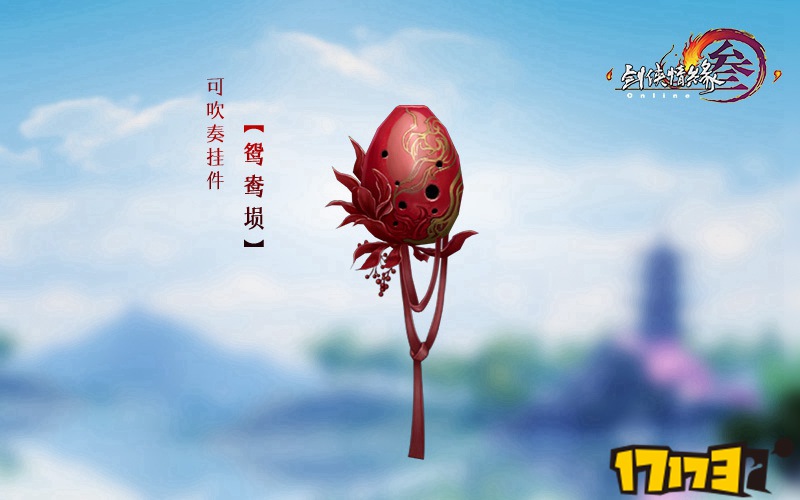“鸳鸯埙”为《剑网3》2017清明节节日任务专属奖励,为具有吹走动画效果的可使用腰部挂件。此埙为五毒教《大荒毒经》中诸多不传蛊法所制。执念颇深之人吹之可得见心中执念,不过眼前幻相转瞬即逝,如庄生迷梦、王郎观棋。据传前任教主魔刹罗有感自身境遇,曾制鸳鸯埙一只。后终觉沉迷幻境乃惑乱人心之举,遂禁绝此蛊,教中仅余其所制一只。当年唐书雁潜伏五毒时在机缘巧合之下意外获得此物,随身携之。