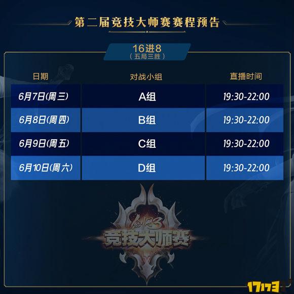 第二届《剑网3》竞技大师赛十六进八席位争夺战即将开启,连续四天,ABCD四个小组将决出晋级上海线下赛决赛的8支战队。精彩比赛更加精彩,一步之遥,究竟谁能成功晋级?2017年6月7日,一起来拭目以待吧!