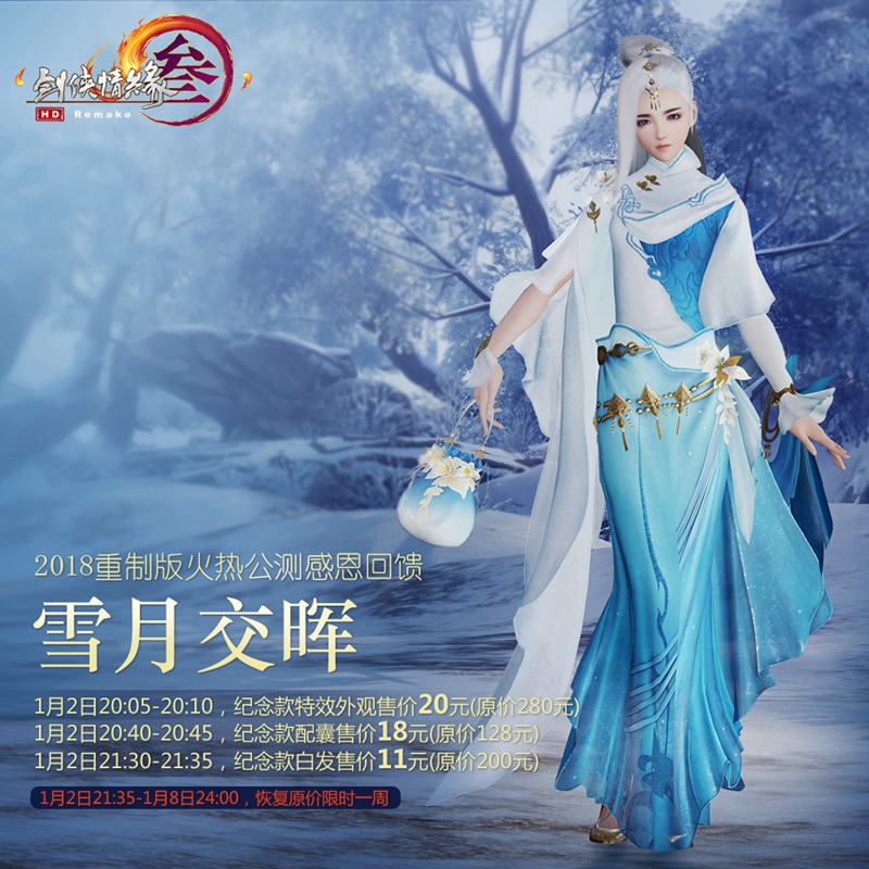 1月2日20:05-20:10,纪念款特效外装“雪月交晖”仅售20元(原价280元);