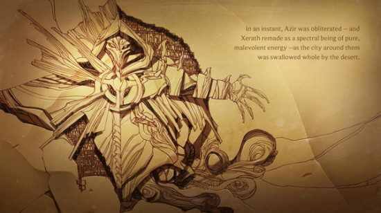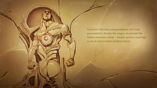 在远古的恕瑞玛时代,阿兹尔是一位年轻的皇帝,他的占星家泽拉斯,无视远古的警示,劝他尝试传说中的“飞升”仪式,这么做可能会造成可怕的结果。