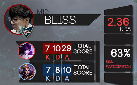 Bliss离开线上之后,他的影响就荡然无存了,走位经常会出现失误。Bliss和他的队友依然缺乏经验,虽然他们肯定不乏天赋,但是想成为一支具有竞争力的队伍,他们的团队表现和战术决策力需要迅速改善。