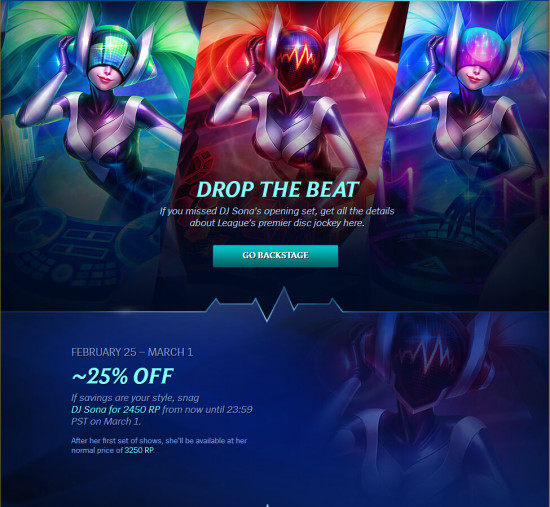 今日,万千粉丝期待的DJ娑娜的终极199皮肤已经在美服上市了,并且美国人民也能享受7.5折的优惠,原本3250RP点券的娑娜售价2450RP出售(约合100元人民币),不知道国服的DJ娑娜皮肤会不会享受相同折扣呢?这款皮肤又会在什么时候登陆国服与广大玩家见面呢?
