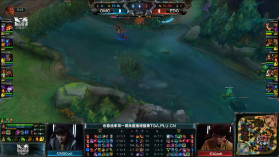 LPL春季赛在今日迎来了最为精彩的一场比赛,由排名第一的EDG与排名第二的OMG联袂为大家献上了一场2015LPL春季赛开赛以来最为精彩 的一场比赛。然而更加出乎所有观众意料的是,本次OMG战队的阵容与之前的首发阵容有了极大的改变:原本作为首发的Uzi与Luo并未首发上场,取而代之 的销声匿迹已久的伞皇以及以辅助身份出现的夕阳。