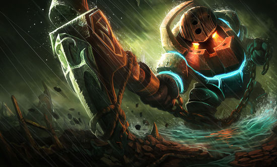 诺提勒斯的普通攻击会对目标造成额外的8(每升一级增加6)物理伤害并束缚住目标0.5/0.75/1/1.25秒(在1/6/11/16变化)。这个特效只能在9/8/7/6秒内对相同目标生效一次。