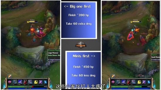2.有AOE能力的打野英雄,在打石头人和F4的时候需要注意小怪血量,其余情况优先攻击大怪即可。