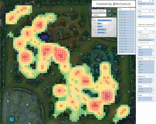 每个队员现在可以研究他们线上的对手和其他位置。为此创造了另一个程序,可以自动跟踪插眼的数据: