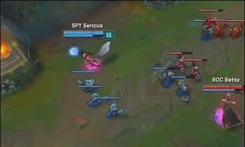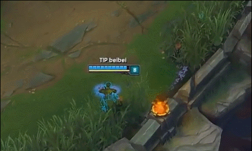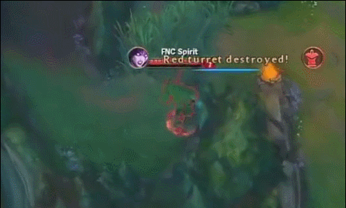 5、过上路三角草的绕后GANK,针对一些推线以及压制能力强的英雄时十分有用,这也是基本的GANK路线之一。好处是由于从己方野区当中发动攻 击,只要控制了三角草的视野一般很难被对手的眼位发现,因此成功率很高。如下图,冠军上单Marin面对这样的GANK也是无可奈何,最终被击杀。