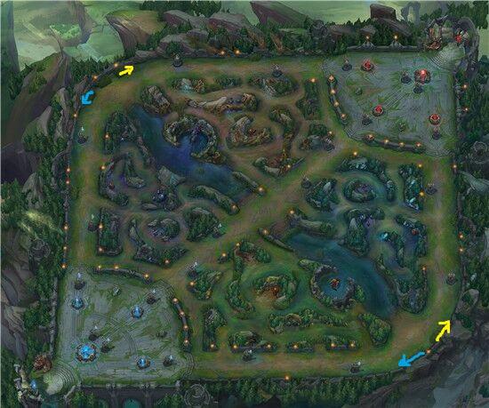 2、中路的绕草丛视野GANK,这也是目前职业比赛较为常见的一种GANK思路,可以绕过对手的中路草丛与河道两个视野区,对于挖掘机、盲僧这类抓 人能力极强的打野来说是个不错的选择。可以在抓人之前先打个F4,其提供的排眼效果能让你的GANK成功率变高,即使GANK不成也能排掉对手的中路眼 位。