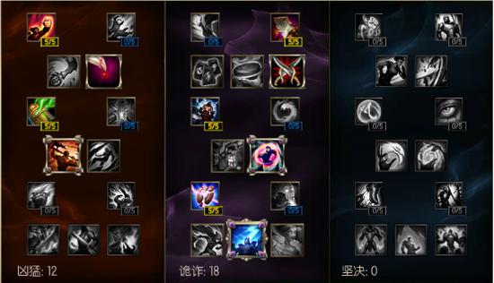 因为主要是靠远程形态输出,不建议点出双刃剑;自身W拥有回复能力,点出先天资质;定位和ADC一样都是持续输出英雄,所以基石天赋选择战争热诚更强;W具有回复能力,点出符能阔甲增强回复能力。