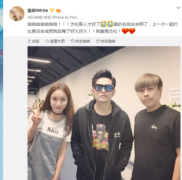 电竞明星与周杰伦合照遭吐槽 2016-07-05 10:26 新浪游戏 7 周杰伦在上海开演唱会啦! 而电竞圈诸多喜欢周杰伦的主播和选手们自然也云集上海。 合照当然是少不了的。 今天,五五开晒出了自己和周杰伦的合照: 而网友的神级吐槽也让人泪流满面…… 朋友们不要这样啊!五五开也是COS过EZ的!