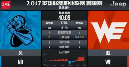最后,WE又是靠着迅速秒龙让NB都来不及反应,带着BF和装备领先毫无悬念的打碎基地结束比赛。