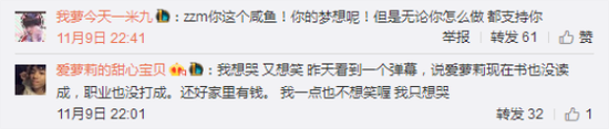 粉丝评论:zzm你这个咸鱼!你的梦想呢!但是无论你怎么做 都支持你。