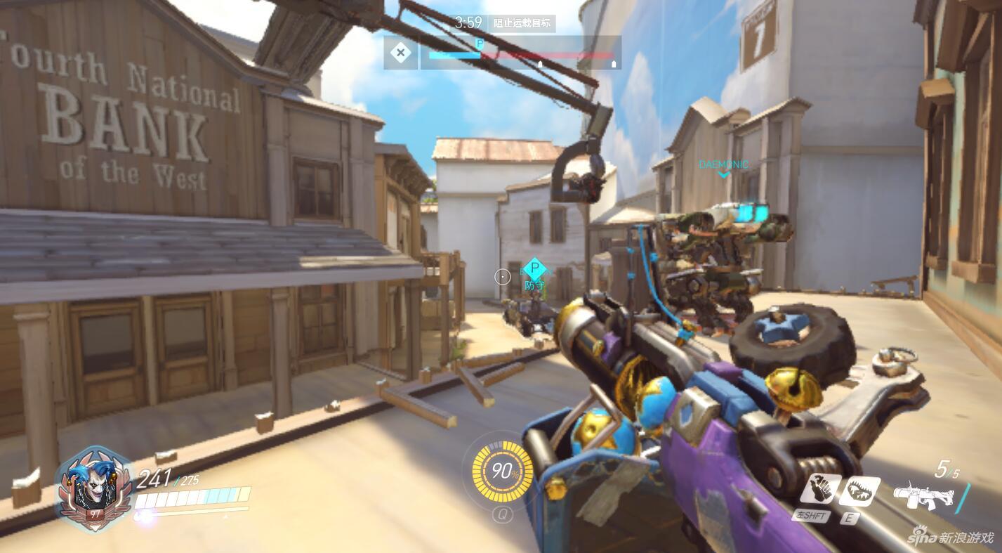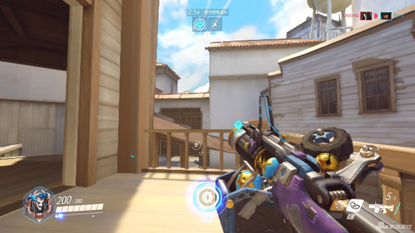 在击杀对方英雄后狂鼠应该立刻退后至A点进行防御,在A点防御中适合狂鼠的防御点有2个,第一点是右侧小道的防御,不过这一区域通常更适合由76、麦克雷等突击性英雄进行防守,因此我们将防御中心放在A点停车位更为合理。在A点主区的防守中,狂鼠的最佳选择是2楼,因为这里视野开阔且更利于狂鼠榴弹枪的发挥,同时狂鼠还可以在2楼将炸弹和捕鼠夹丢置于对方的进攻路口处,对大门处的敌方直接进攻也有很好的压制效果。