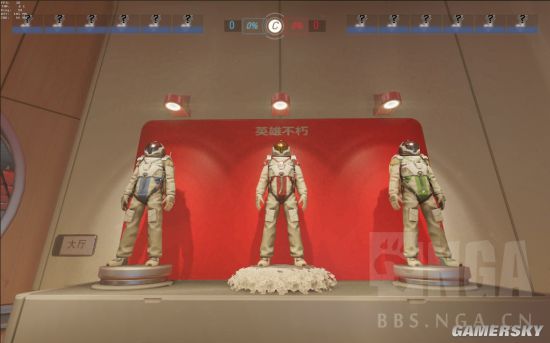 现在,我们在漓江塔中发现了他的身影:在漓江塔地图红色方,进楼门以后左拐可以看到三个穿宇航服的人物模型,背后红墙上写着“英雄不朽”,前方中间宇航员的胸口上写着“宏宇”二字。两侧其他人还没有名字,但宏宇的脚下多了一圈白花。如果设置里的模型细节是低,就看不到这些细节了。