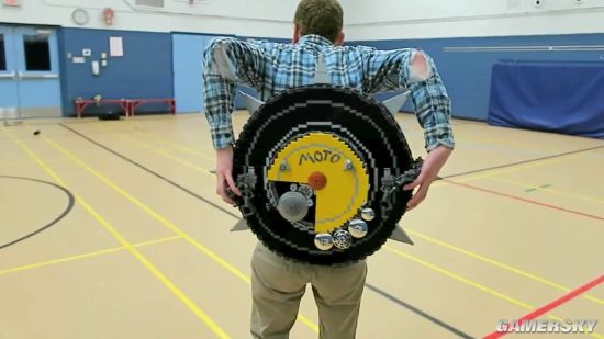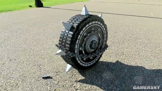 这个轮胎炸弹使用了4500块乐高拼凑而成,还安上了轮胎外面的刺,如果把刺取下来,轮胎可以“稍微”转两圈,这个稍微真的一点也不夸张,没出两米就散架了,大概这个轮胎不是用来爆敌人的,是用来自杀的还差不多。