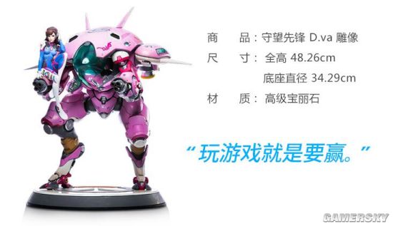 D.Va雕像在细节上也非常考究。由于每一座雕像都是手工绘制,工期较长,预计2017年12月底发货。喜欢的玩家不要错过哦。