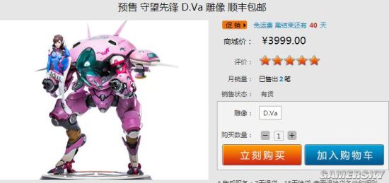 《守望先锋》D.Va雕像已经正式在国内开启预售,感兴趣的玩家可以前往暴雪商城预定这款雕像。雕像预售价格为3999元,并且限量800座。