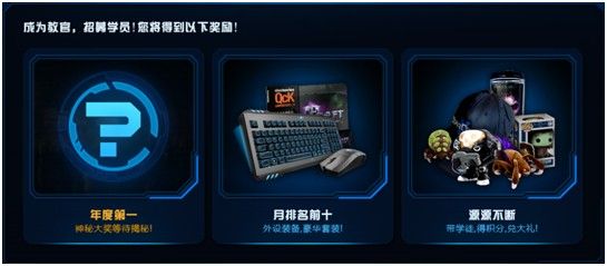 每月教官排行榜前10的我们都将在次月给您寄来精美外设奖品。月月更新哦!(每月最后一天为教官月排行榜清算日,次月首日我们将在月度排行榜中清0。进行下一个月度的教官排名。)