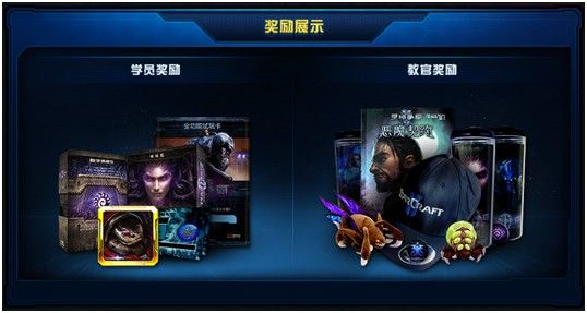 赶紧登陆星际争霸II教官系统,不论是学员还是教官,官方都为大家准备了丰厚的奖品。有游戏内的虚拟道具、星际II的实物周边、高端霸气的外设装备。只要你满足条件就能够获得这些奖品。
