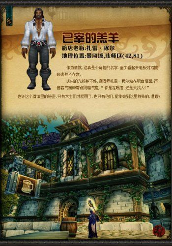 已宰的羔羊旅店在暴风城法師区,很多玩家都很好奇他为什么有这么诡异的名字,其实这个名字來自一个关于狼人的恐怖片,‘美国狼人在伦敦’ (AMERICAN WEREWOLF INLONDON,1981年),该片是奧斯卡历史上第一个最佳化妝奖得主,片中一個著名的场景已宰的羔羊,是位于伦敦北部的一家黑暗而混乱的酒店。