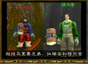 拉瑞安和穆尔金是安哥洛环形山马紹尔营地的兩个NPC,在那边能接到消灭血瓣花的任务,中文版的翻译让這兩個NPC的名字变普通了,他们的英文 原名叫做 LARION 和 MUIGIN,恩,看起來好像也沒什麼,但是若是把个個名字的字头调换跟字尾的N去掉,会变成什么,SEE!是MARIO跟LUIGI,迹底竟然是伟大的 馬利奥跟路奇阿!再看看他們的装扮,正是馬利奥跟路奇的招牌红绿色装扮。而且绿色衣服的穆尔金(路奇)也跟游戏一样对他的兄弟喋喋不休的抱怨,仔细听听其 实很有趣。至于为什么他们会要消灭食人的血瓣花,跟拿大槌子当武器,相信玩过‘超级马利奥’跟‘马利奥与路奇’的玩家应该再清楚不過了。