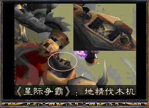 庞然大物哥不林伐木机的技术显然是从外太空來的,因为你只要从俯瞰的角度看,就会赫然发现操作面版上印的是星际争霸中昆虫族女王的脸。