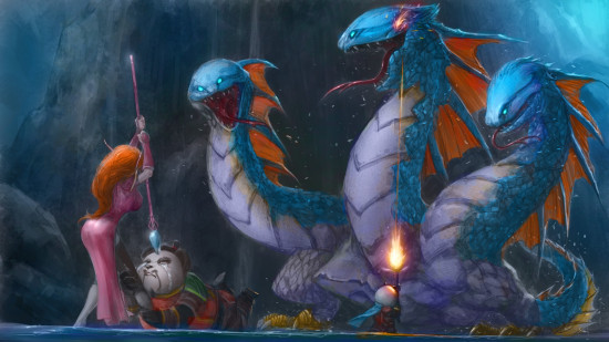 黑暗深渊,当最后的阿库迈尔出现时,熊爸爸吓的大哭,发出尖叫:“哎呀!这只三头怪真可怕!!"然后死命的抱住血精灵的大腿:”救命啊!!“