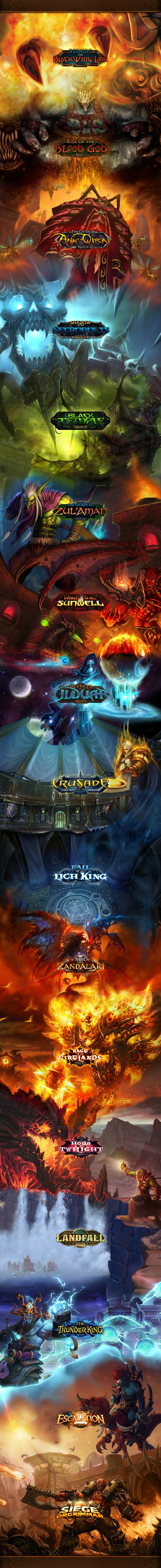 魔兽世界所有版本大串联,由上至下 回忆满满~ 图片均选自暴雪画廊。