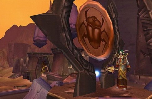 流沙之战过后,一切平静下来,甲虫之锣纹丝不动的矗立在那里。但,那是无数巨龙用生命换来的;大德鲁伊鹿盔在此摔坏了流沙权杖,虫人大军也被封印在后方。漫长的开门任务,是当年无数玩家的记忆,第一个敲锣的人是幸福的,不仅仅是黑色甲虫的奖励,那是无数汗水过后的回报!