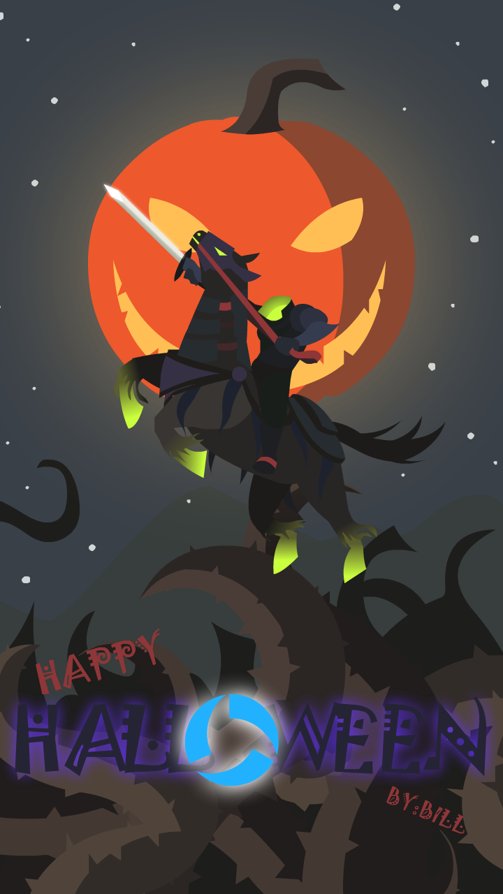 玩家原创作品欣赏:万圣节真·无头骑士剪影画
