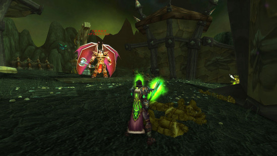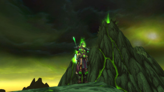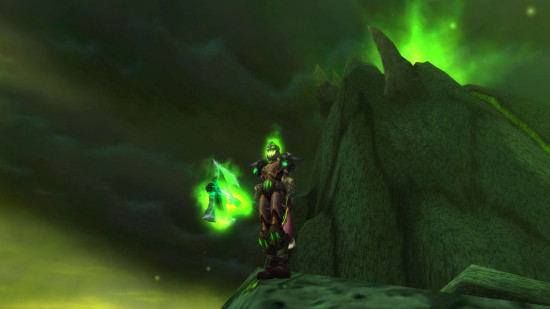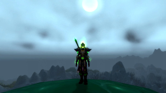 这套主要追求的是绿焰效果,如果要追求金属材质更贴切的话,恐惧之心和永春台普通10人掉落的散件套或者战士回响之环套更华丽,但是现在只有随机打,WOD到100级再去单刷~