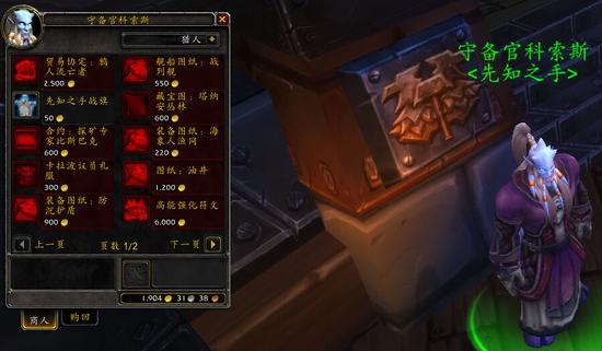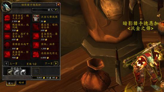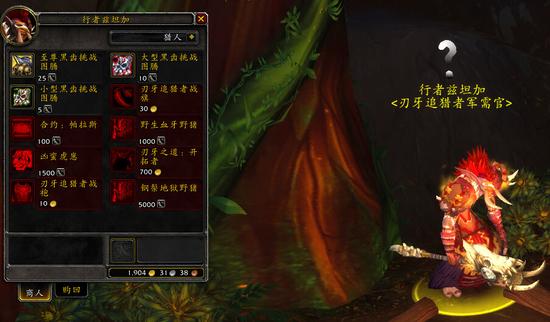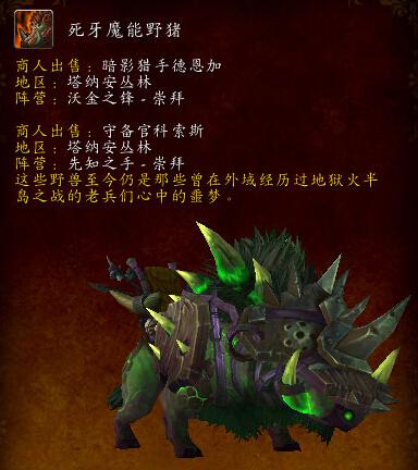 - 军需官:暗影猎手德恩加,塔纳安丛林部落营地沃玛尔要塞。