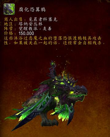 使用:教你学会召唤腐化恐翼鸦,这种坐骑的速度回根据你的骑术等级和所在区域改变。