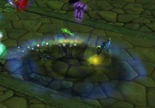 有毁灭之种的玩家必须快速跑离邪能水晶,分散避免毁灭之力互相击中。