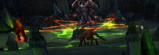 达戈拉什召唤4名恶毒的亵渎者举行恶魔献祭,并控制一团毒害之云扫过整个场地。