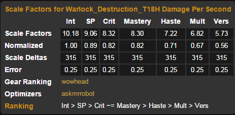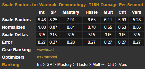 三目标套装。三目标战中的恶魔术超过了毁灭,但是依旧被痛苦碾压。有趣的是,4T17M恶魔术超越了所有的毁灭。虽然依旧被痛苦术碾压,但这并不是问题。别丢掉你的4T17M,直到你凑齐了4T18H。
