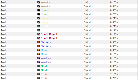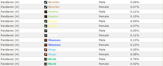矮人最受欢迎的职业为猎人,估计是受到了矮人火枪手这一经典角色的影响,紧跟其后的为萨满,这则要得益于矮人的种族天赋了。