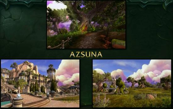 这个资料片的背景建立在上古暗夜精灵文明的遗留之上,没有哪里比阿苏纳跟能代表那个文明了。在你踏足阿苏纳的那一刻就会明白,这里曾是个非常特殊的地方。我们会遭遇上古暗夜精灵的鬼灵、一支即将灭亡的蓝龙族群,我们还将首次认识夜堕精灵(Nightfallen),他们曾是苏拉玛城中的皇亲贵族,但被驱逐出城,等待他们的只有死亡。我们还将同艾萨拉女王及其仆从竞争,以期先于她获得藏于阿苏纳的创世之柱。