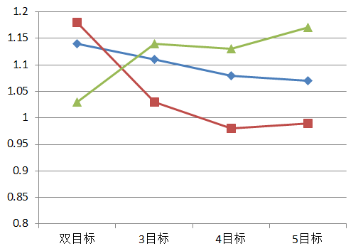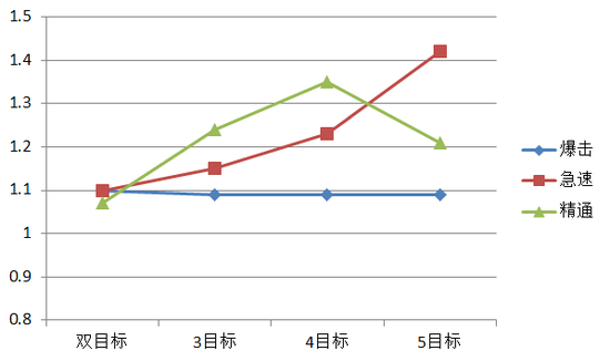 双目标时收益最高的急速在3目标时急剧下降,和智力持平(智力为1);